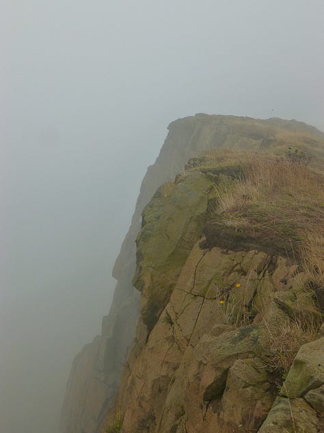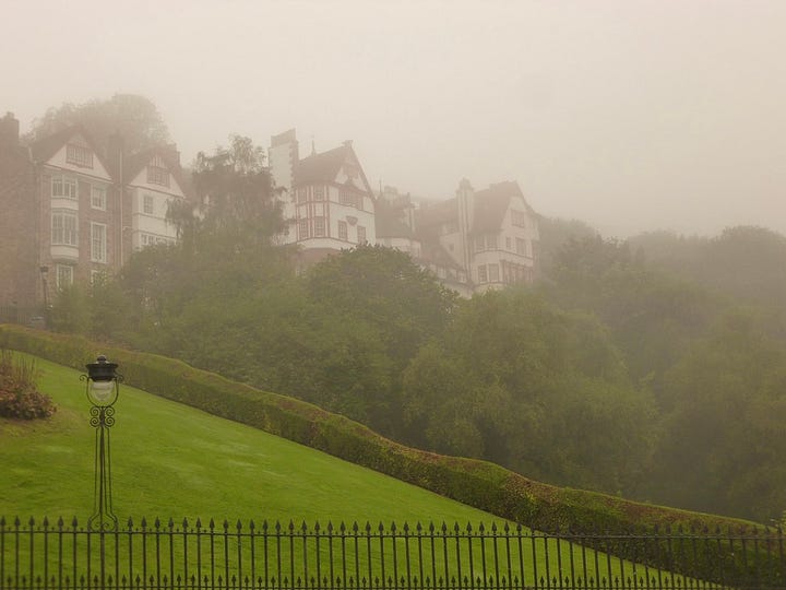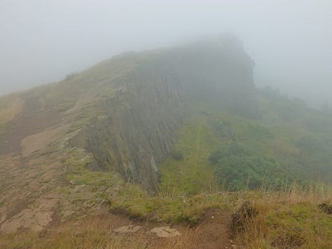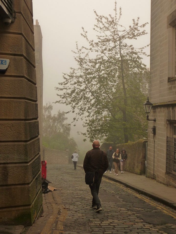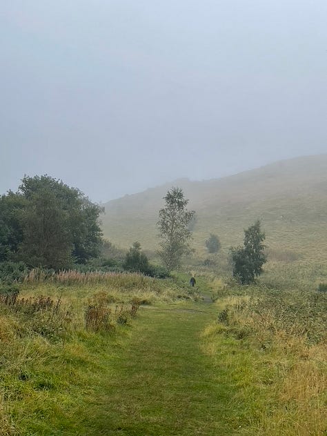 I passed a starkly modern building that turned out to be Parliament as I approached the park. The trees ended and gave way to the vast greenery that lay right in the heart of Edinburgh. Arthur’s Seat, the “hill” inside Holyrood, loomed upwards into dense fog. Having no knowledge of the trails, I followed a couple that walked up a steep dirt path diverging off the main gravel one. Within minutes the city had faded into the fog beneath me and I was climbing a ridge that continued upwards a distance I couldn’t see. I wanted to go even more remote, so I took the first left turn I saw, which was a path of trampled grass that I decided looked trustworthy. I kept walking until I could hear almost nothing but the wind in my ears. At one point I got nervous that I was going in completely blind, both in knowledge and in visual information. I could barely tell which way was up since the fog obscured everything. After a quick flash imagining getting injured or trampled by a deer and being left there to die, and a quick check that I still had service, I decided I was probably fine. I stood still in between rolling hills and dips and listened for nothing. The peace was exhilarating.