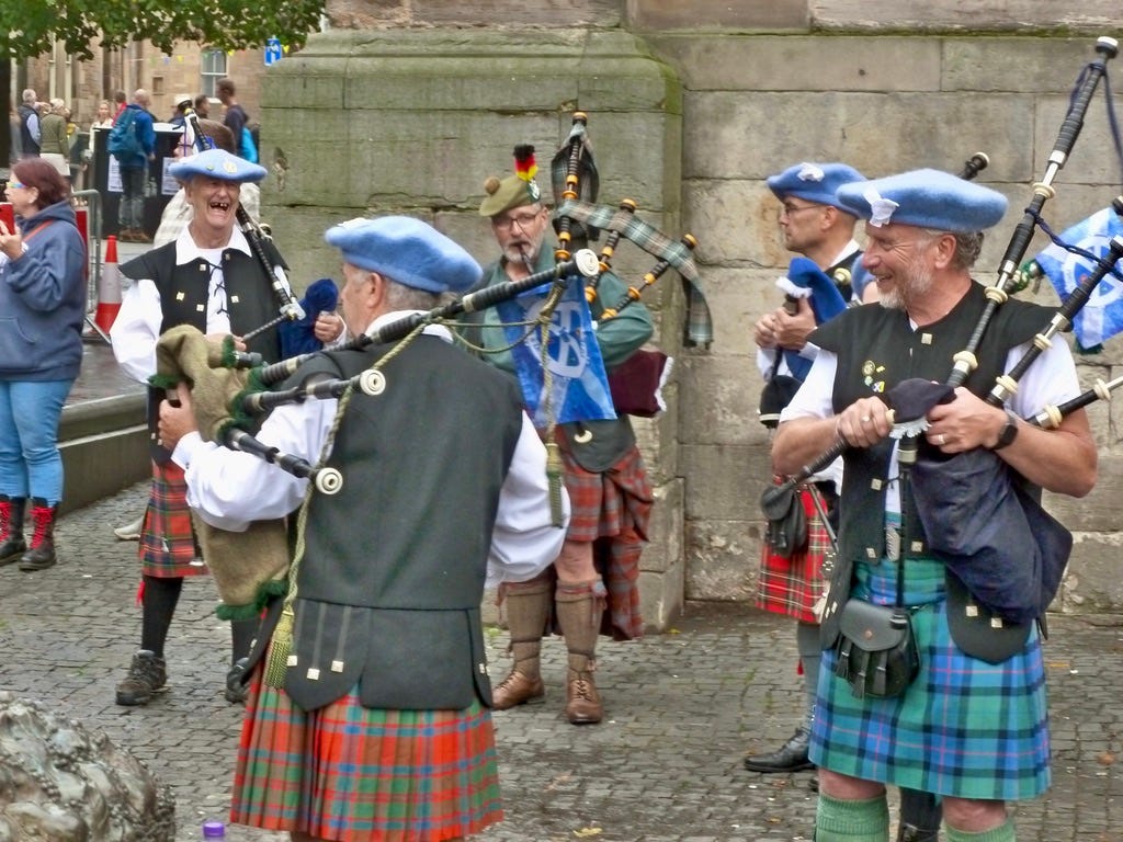 Love, love, love. Your writing. Bagpipes and iCarly. LOL. Someday maybe you will get to hear the Galician version in Santiago de Compostela, Spain, at the end of the Camino. Otherworldly.